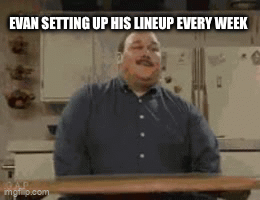 - The Evil Doctor (6-0; Evan Clayton): Unlike our loser at the bottom of the rankings, Evan finds himself without any L’s to start the year. An impressive 6-0 start with his core group, by and large, healthy. The luck of the draw in fantasy, sometimes, is the health of your roster, and Evan’s group has largely avoided the injury bug.