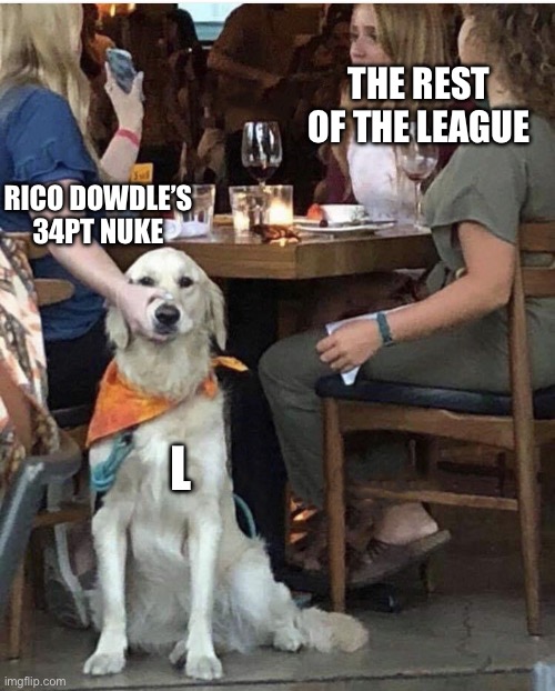 6. Sparta Waffle Eaters (3-3; Josh Tucci): Josh’s team is a little over the place with how they play, especially this last week. It’s either mediocre, great, or in the latest case, horrible. When you have 2/3 of your team fail to clear double-digit points, you don’t stand much of a chance. Such a shame too; Greg didn’t really play that well either.
