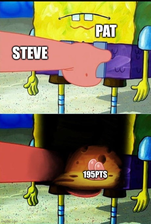 9. Team Maxson (3-4; Johnathan Maxson): Sometimes you just don’t play well, but it doesn’t really matter in the end. John puts himself in a safer position from punishment implications with a crucial win over Jimmy. All of that being said, this team has to play better if they want to make a chance for the playoffs now that we’re in the second half of the season.
