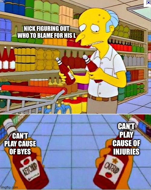 5. Bakers Cookies (4-4; Nick Calabrase): Between BYEs, injuries, and playing a version of Jimmy that actually resembled a team, Nick falls to .500. This was a tough one to push through for Nick considering the former reasons, so it is time to move to Team Maxson for week 9.
