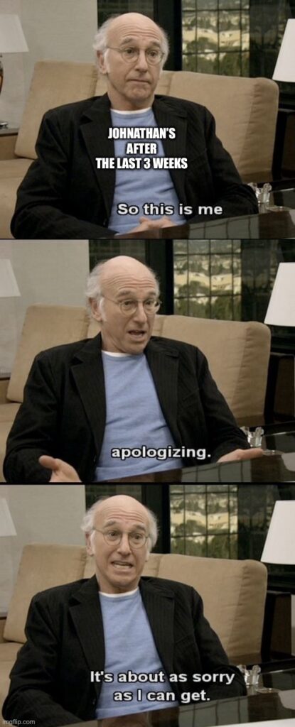 4. Sparta Waffle Eaters (4-4 Josh Tucci): Josh’s team snapped back into reality this week with a 110pt performance that proved to not be enough against a surging Steve. I was going to ask you for a favor, but perhaps I don’t want to jinx myself. Anyways, Josh plays Pat this week (yippee).