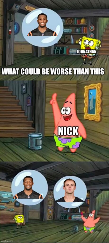 3. Bakers Cookies (5-4; Nick Calabrase): Nick’s team were throwing haymakers into Johnathan’s team this past week as they dropped over 180 points. Brock Bowers is back in full force and Tee Higgins having a functional quarterback makes this team a little scary coming down the stretch.